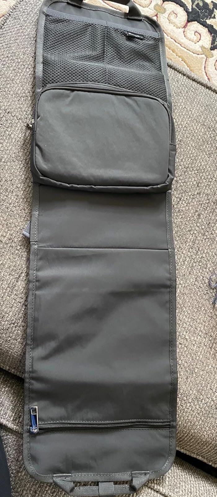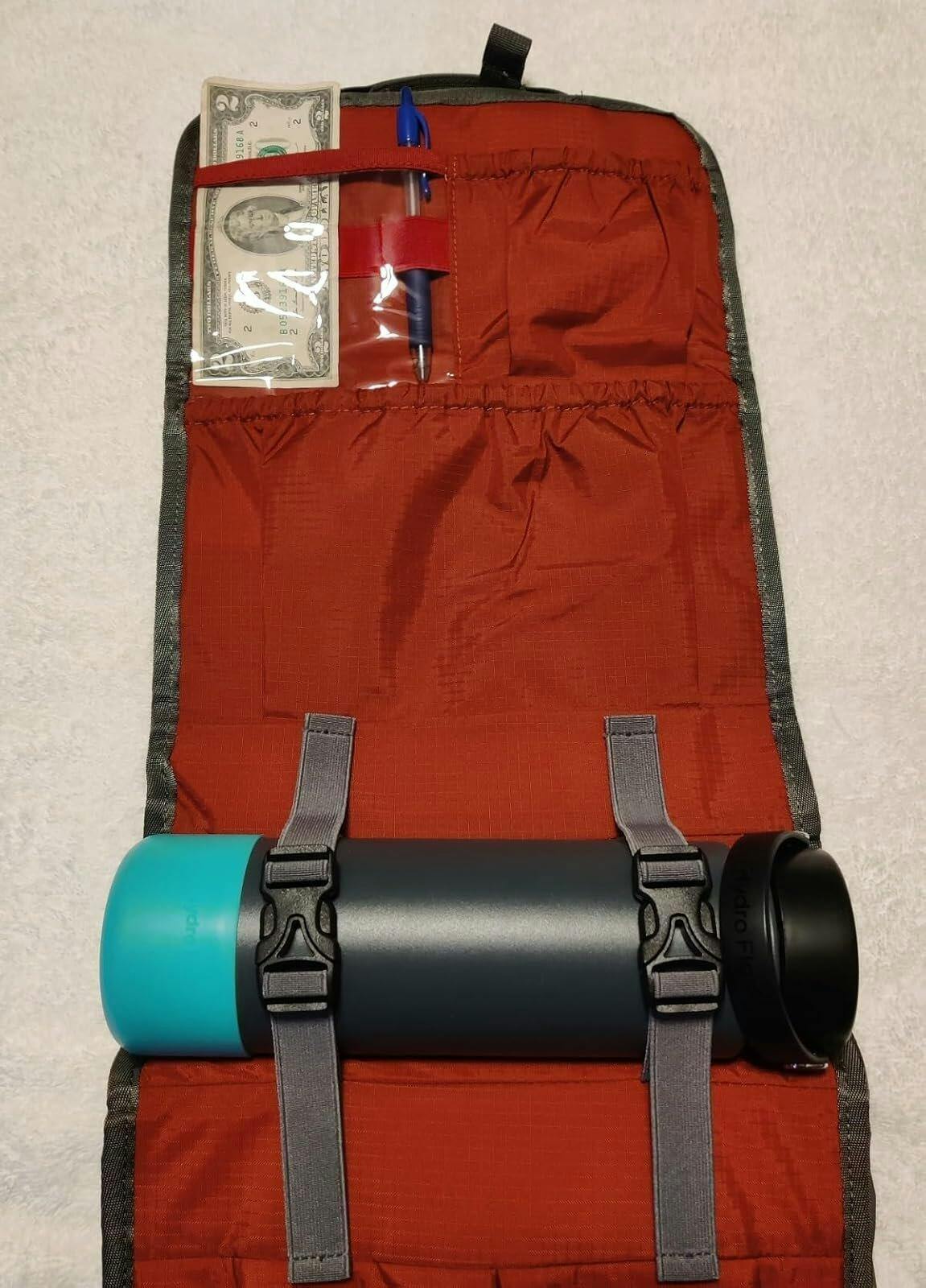 It fit perfectly in my travel backpack, and, though it did take up a lot of space, it was so nice to be able to find what I wanted without rooting around or having to empty everything out of the backpack. Laid out on the bed, it's very easy to take everything out quickly for storage. I always let it air out in between trips so there's little chance of any unwanted growth on the fabric.